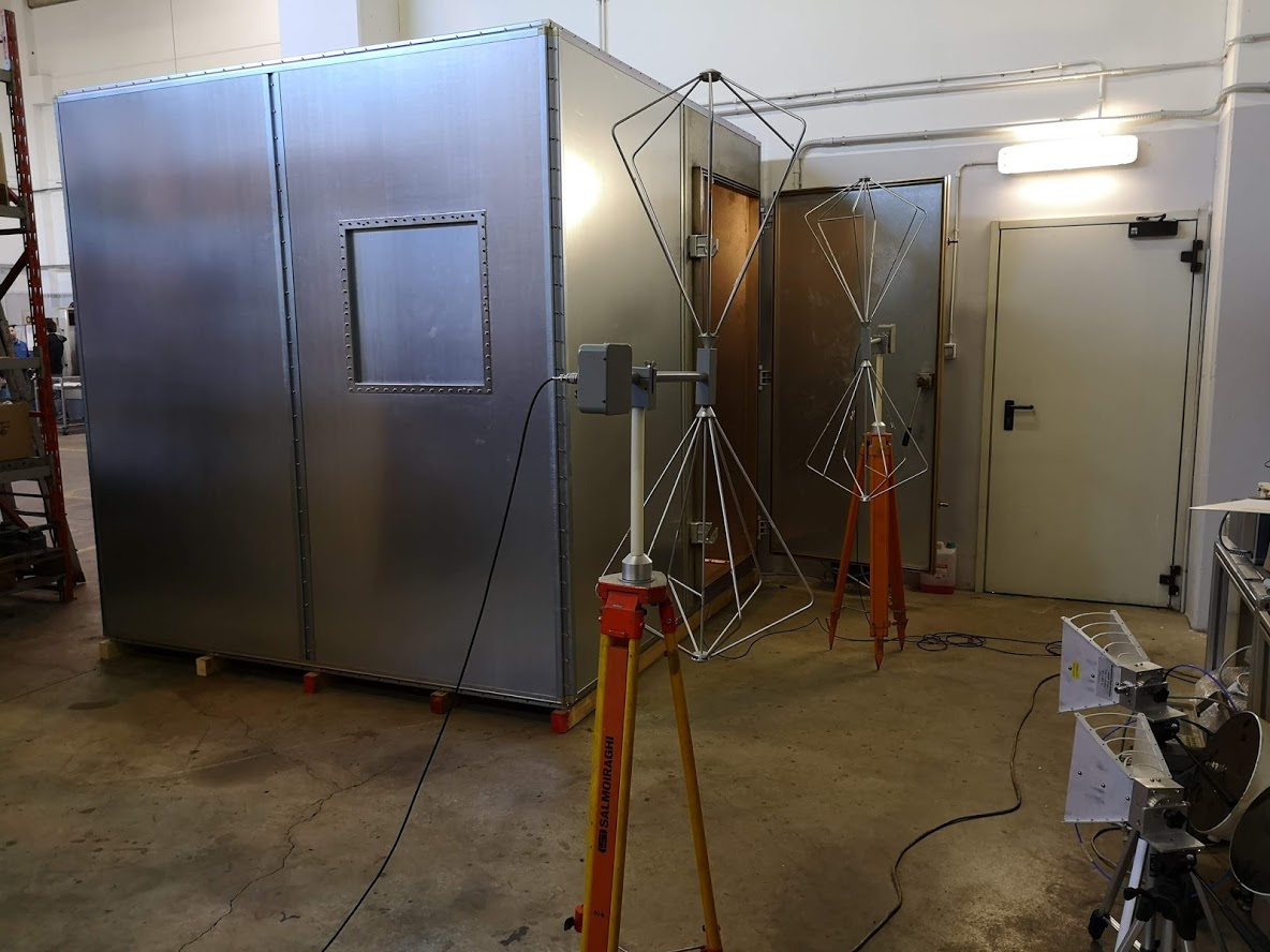 Con test che includono campo elettrico, campo magnetico, onda piano e microonda. Dai 30MHz fino ai 18 GHz