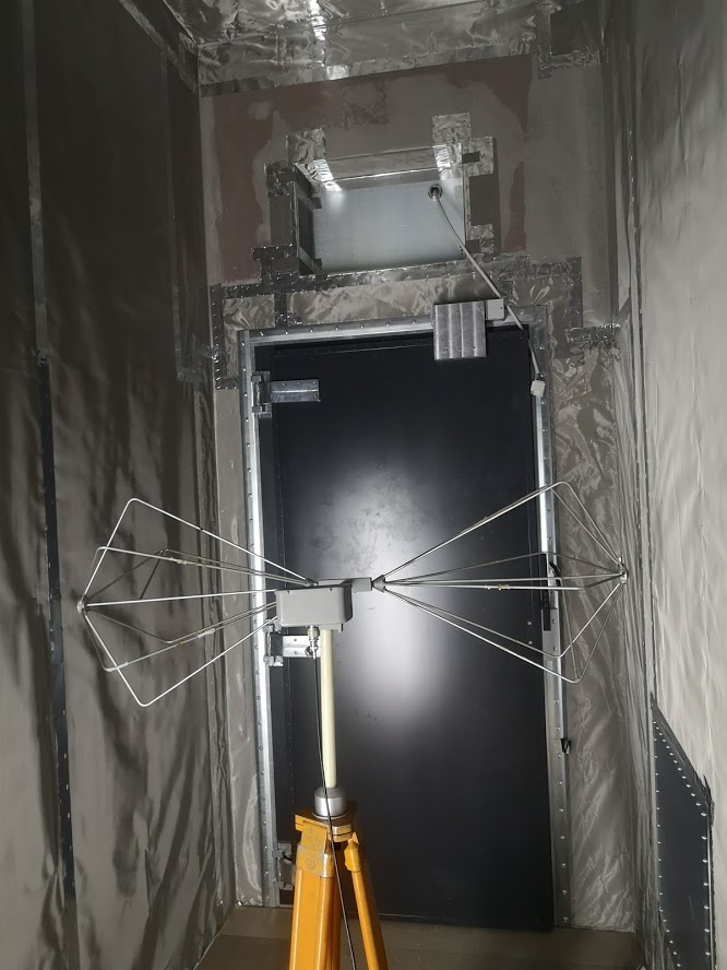 Results achieved despite the use of the IEEE299 standard for EMC laboratories, much more penalizing than Tempest zoning (usually used to certify data protection rooms). The first consists in generating a strong signal no long from the external wall of the chamber and measuring its intensity inside; on the other hand, Tempest zoning involves positioning the transmitting antenna inside the shielded environment and measuring the signal intensity at the limits of the safety zone.