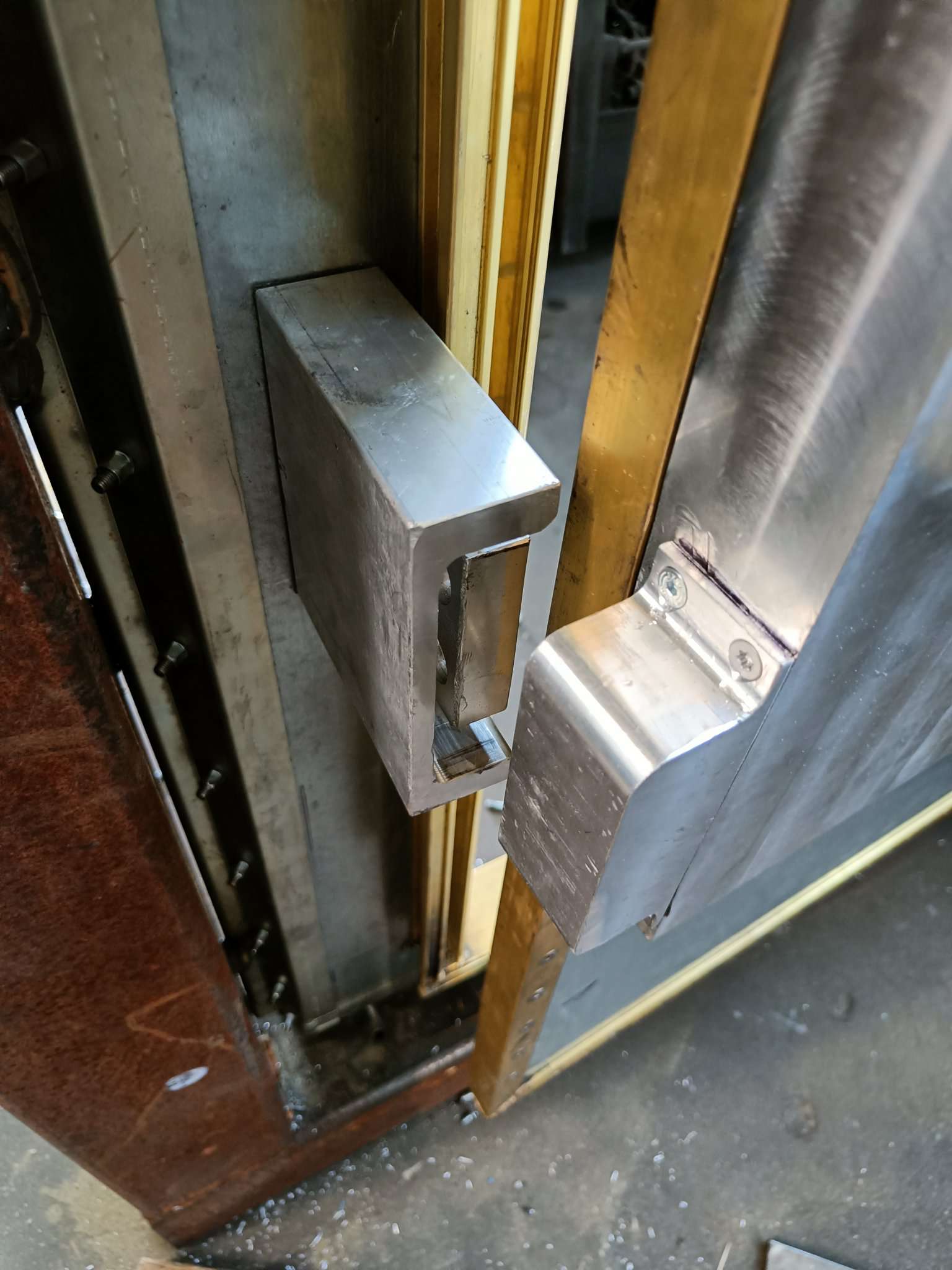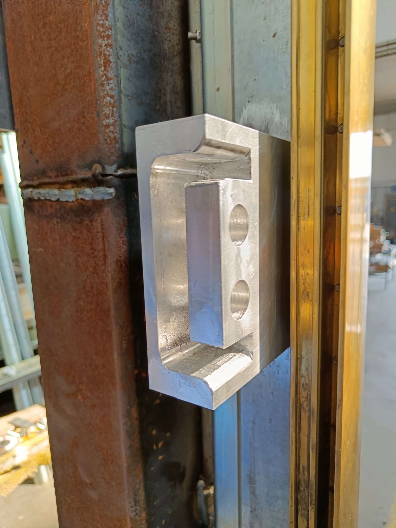 Il supporto serratura è ricavato con macchinari CNC partendo da un blocco pieno 1300x200x60mm, così anche le tasche in cui ingaggiano i catenacci dei deviatori e della serratura centrale.